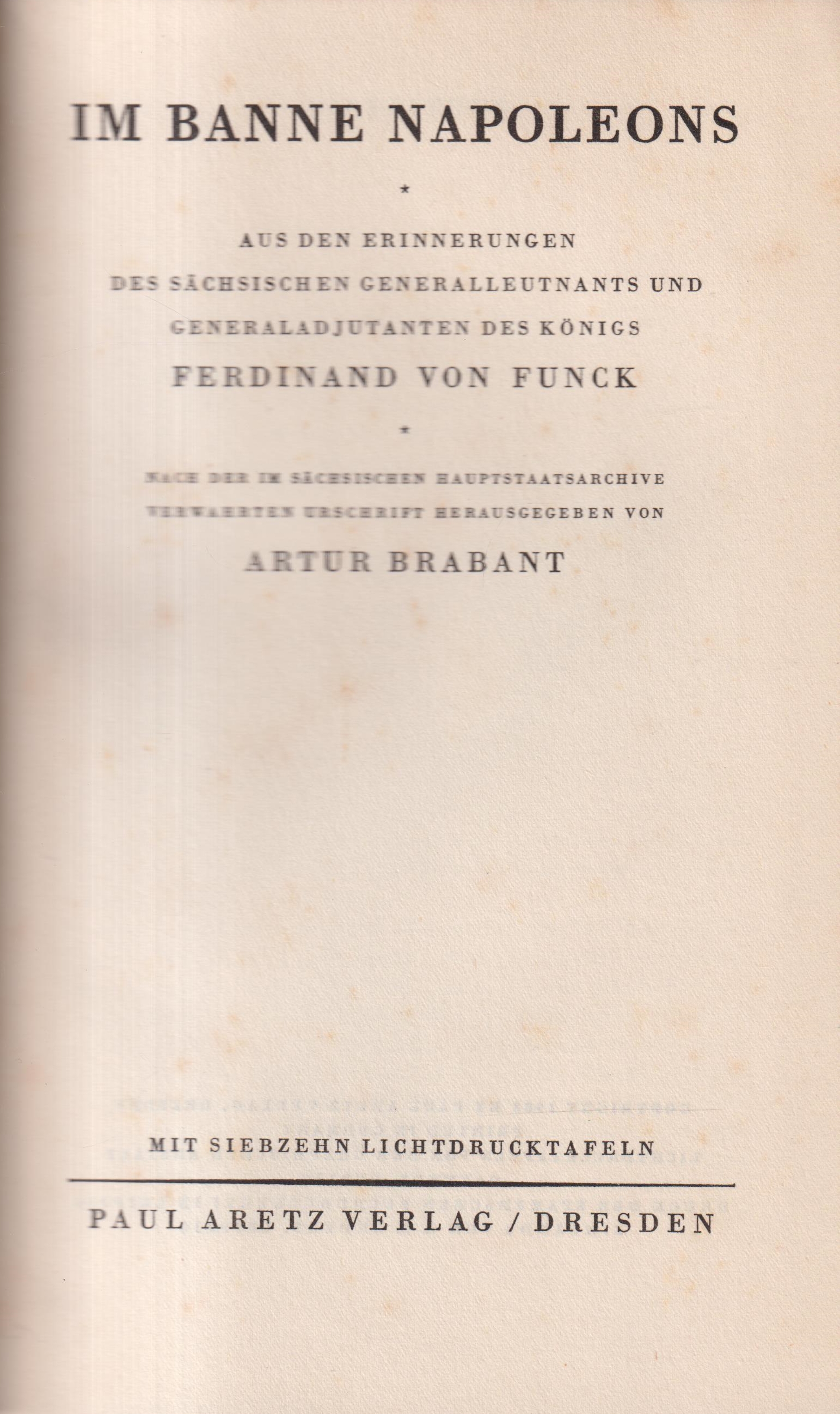 Im Banne Napoleons Aus den Erinnerungen des sächsischen Generalleutnants und Generaladjutanten des Königs Ferdinand von Funck.