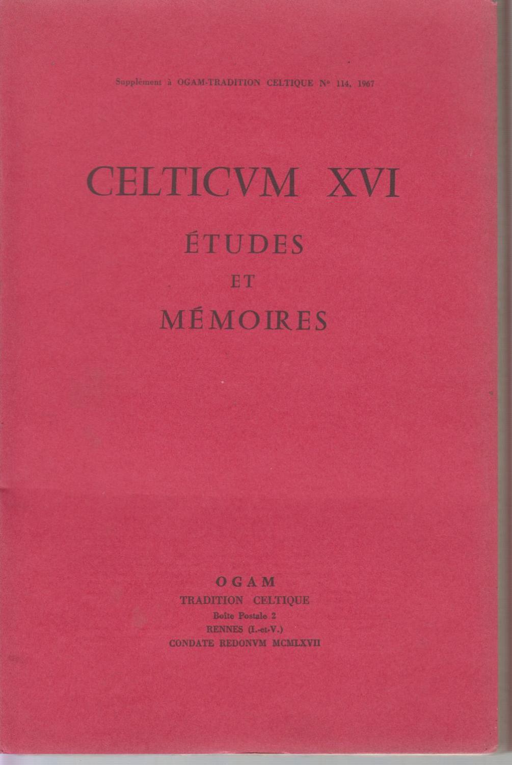 CELTICUM XVI. Etudes et mémoires. Supplément à Ogam-tradition Celtique N° 114, 1967. Nages (Gard) Des origines à la fin de l'Ere antique. Le temple de Belbèze-en-Comminges. Le temple Gallo-Romain de Belbèze en Comminges. Autour de quelques bronzes figurés trouvés à Lvgdvnvm Convenarvm (Saint-Bernard-de-Cimminges, Haute-Garonne)