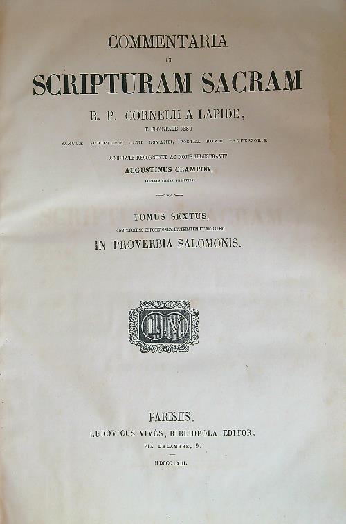 Commentaria in scripturam sacram R. P. Cornelii a lapide Tomus Sextus