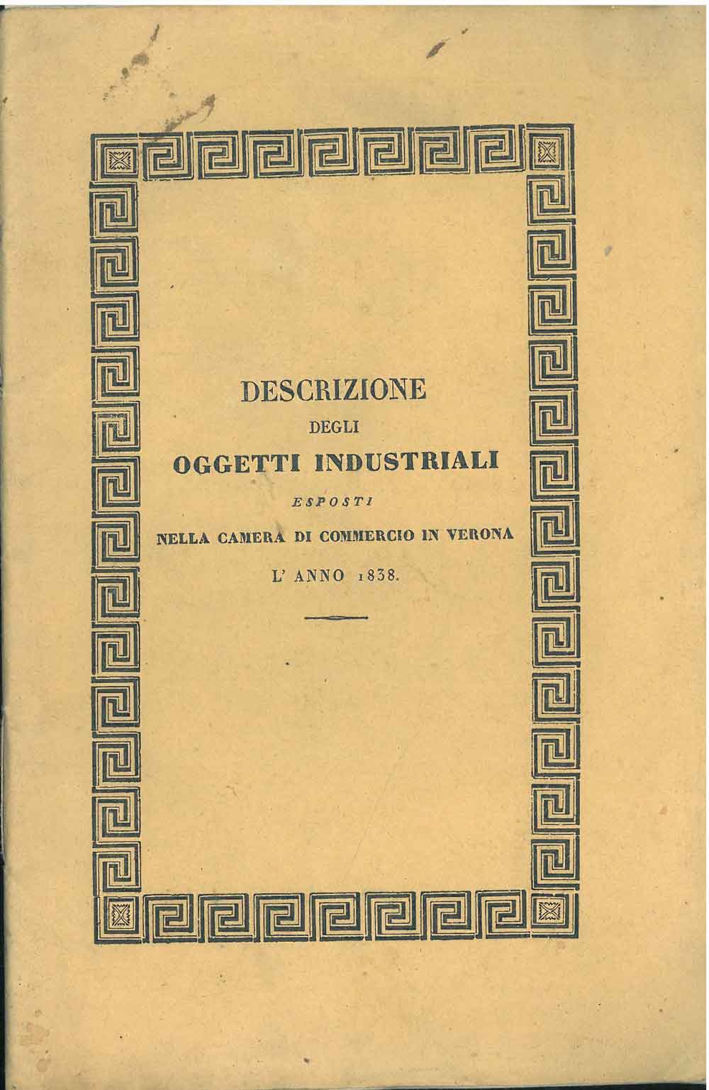 Descrizione delle manifatture veronesi esposte nella sala della camera di comercio arti e manifatture della città e provincia di Verona nella fausta circostanza della venuta di Sua maestà I. R. A. Ferdinando I l'anno 1838