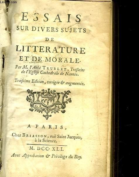 ESSAIS SUR DIVERS SUJETS DE LITTERATURE ET DE MORALE