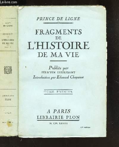 FRAGMENTS DE L'HISTOIRE DE MA VIE / EN 2 VOLUMES : TOME PREMIER + TOME DE SCOND.