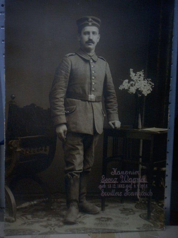 Große Originalfotographie eines Soldaten aus dem Ersten Weltkrieg.