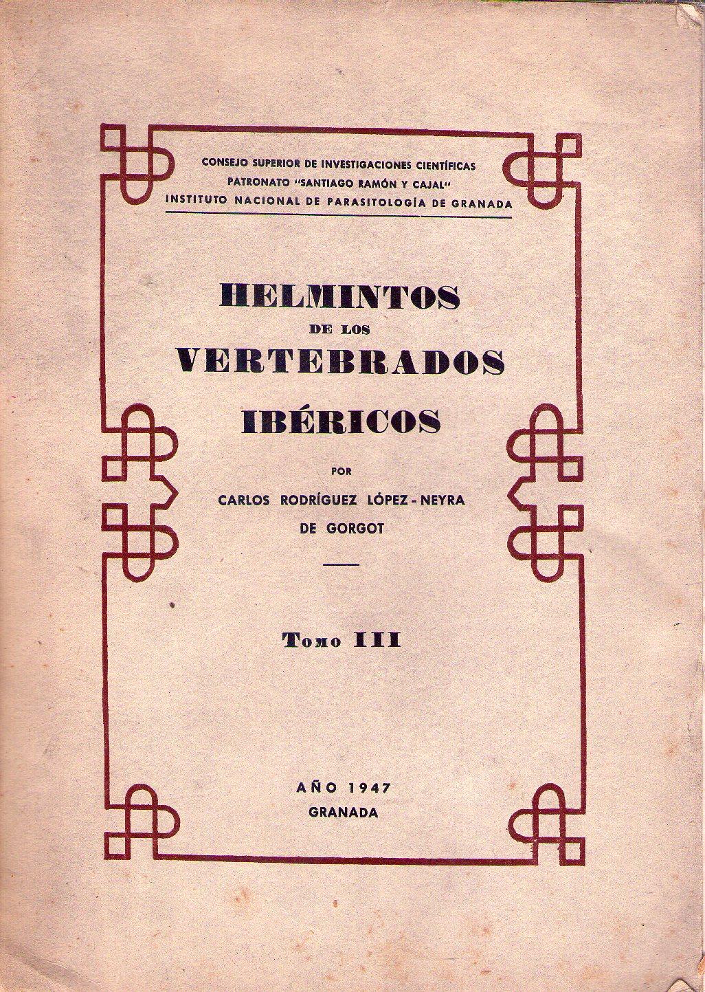 HELMINTOS DE LOS VERTEBRADOS IBERICOS. Tomo III
