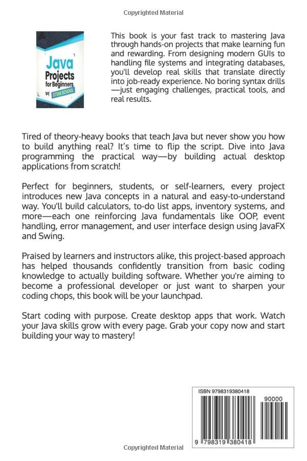 Java Projects for Beginners: Learn Java Programming by Building Real Desktop Applications: 10 (Mastering Programming - The Ultimate Beginner's Guide to C, C++ and Python)