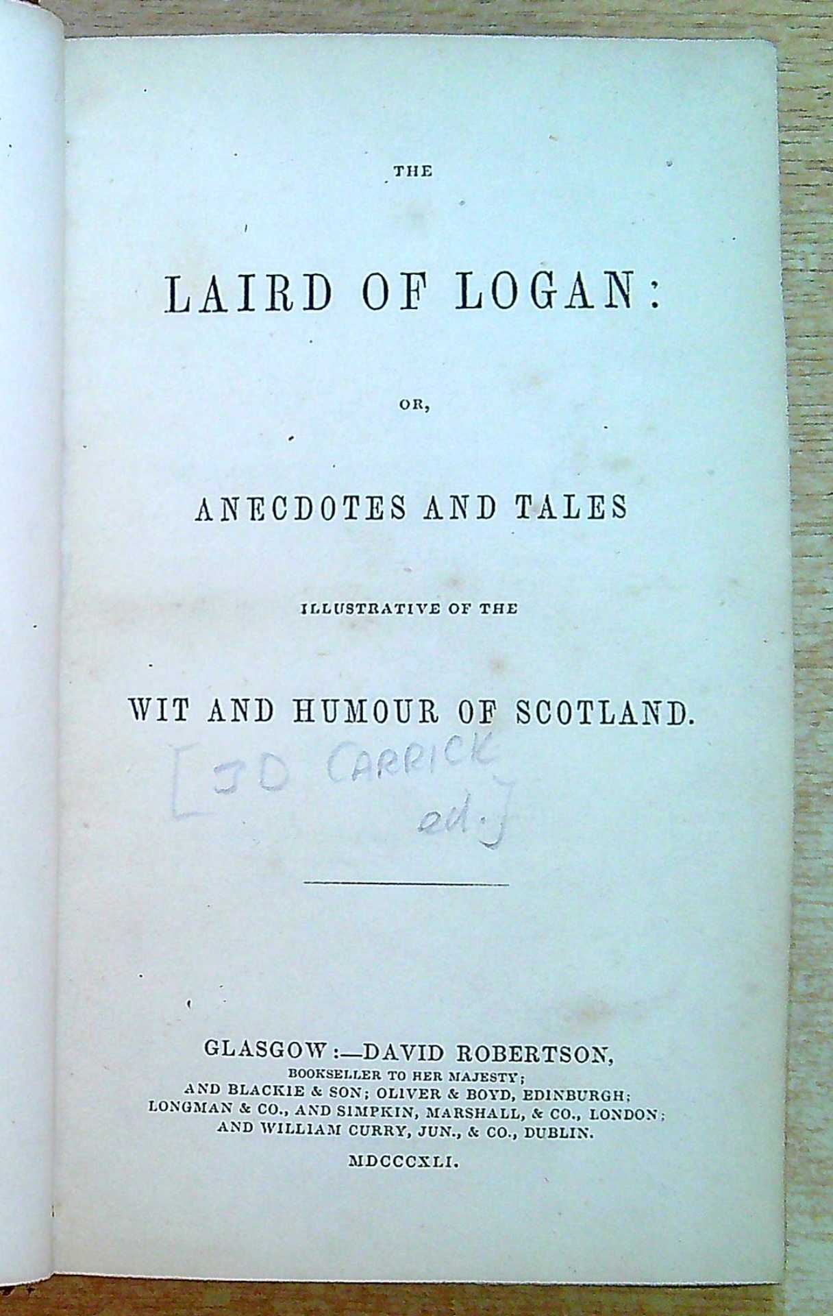 The Laird of Logan: or, Anecdotes and Tales illustrative of the wit and humour of Scotland