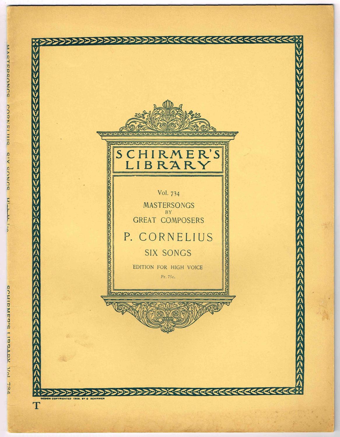 MASTER SONGS BY GREAT COMPOSERS: PETER CORNELIUS - SIX SONGS - Edition for High Voice: Vol. 734 in Schirmer's Library of Musical Classics series