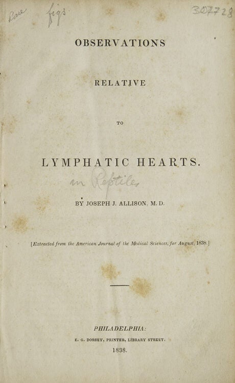 Observations relative to Lymphatic Hearts (in reptiles)