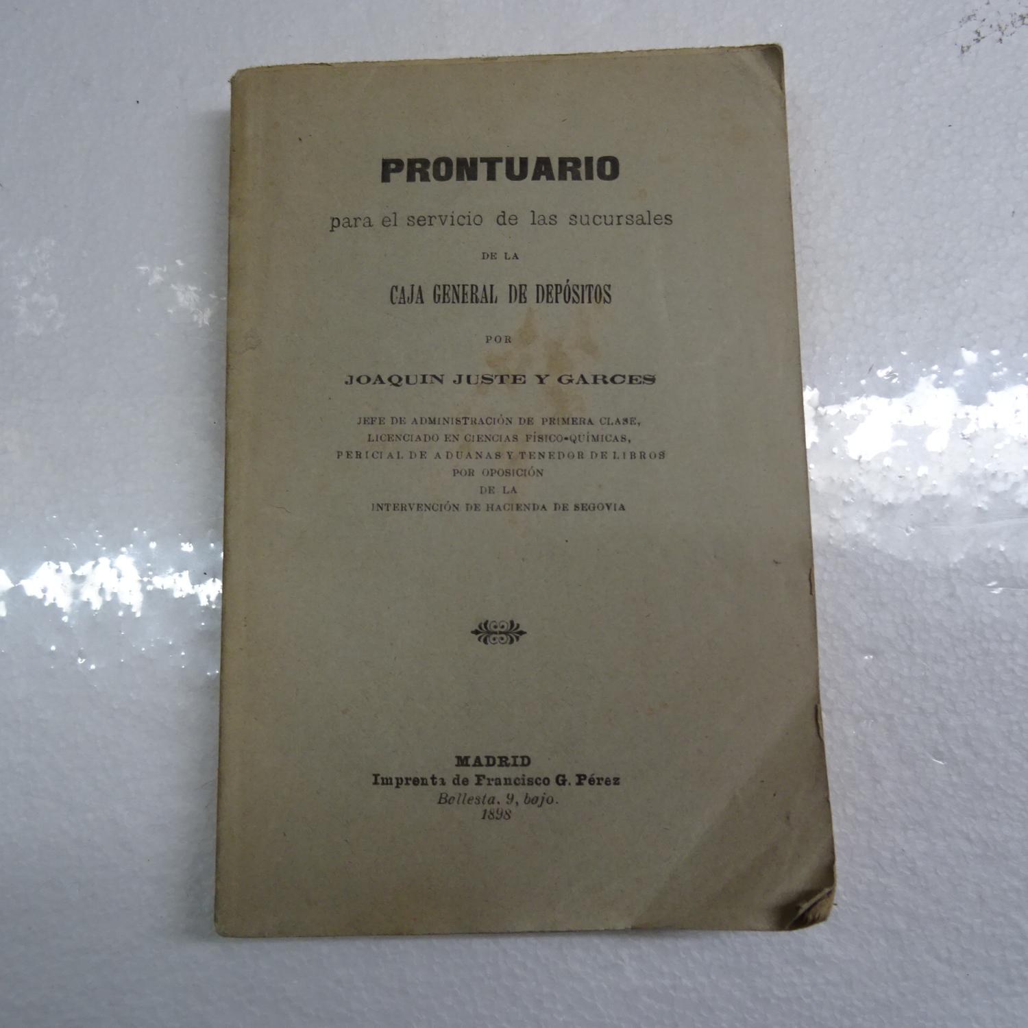 PRONTUARIO PARA EL SERVICIO DE LAS SUCURSALES DE LA CAJA GENERAL DE DEPOSITOS.