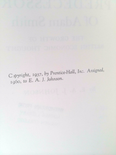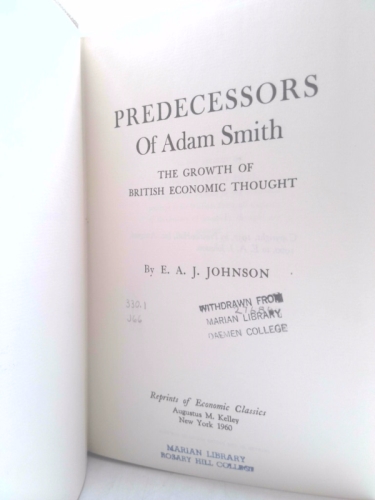 Predecessors of Adam Smith;: The growth of British economic thought, by E.A.J. Johnson (Reprints of economic classics)