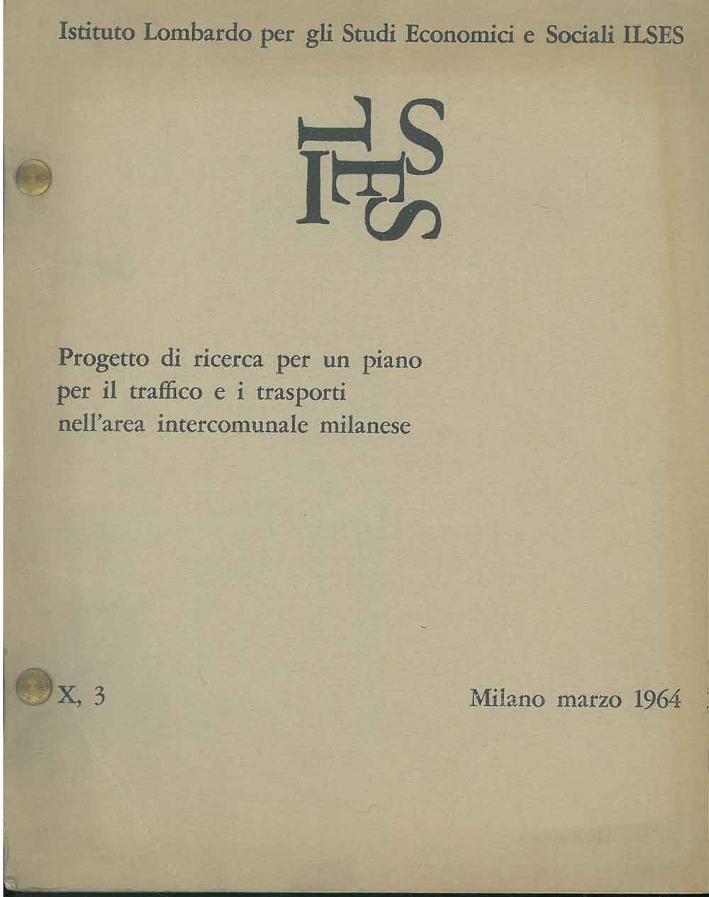 Progetto di ricerca per un piano per il traffico e i trasporti nell'area intercomunale milanese