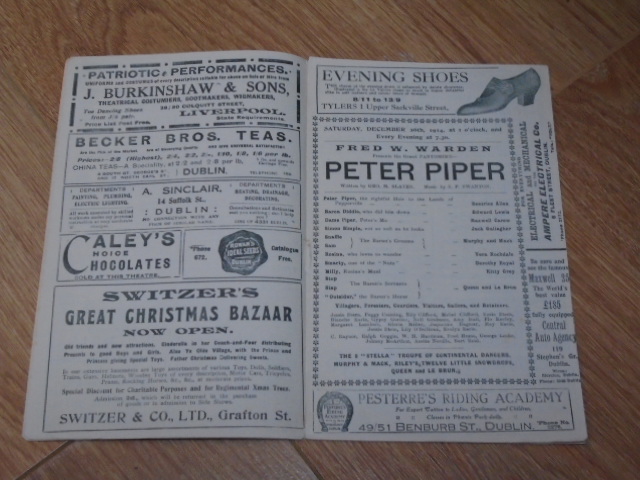 Programme: Fred W. Warden Presents the Grand Pantomime Peter Piper Written by Geo M. Slater December 26th, 1914.