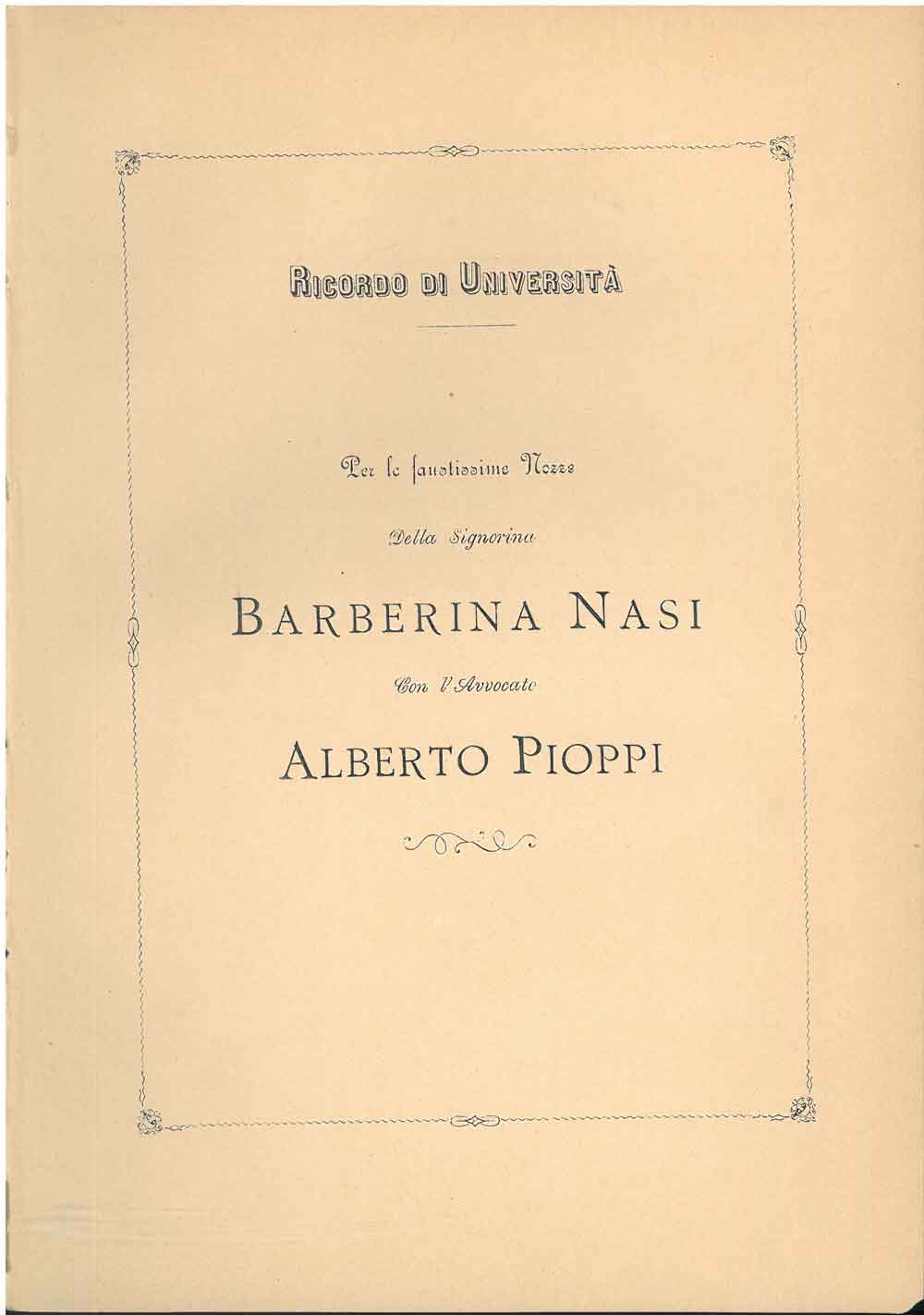 Ricordo di Università. Per le faustissime nozze della Signorina Barberina Nasi con l'avvocato Alberto Pioppi