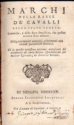 Rime; Marchi delle razze de' cavalli; Compendio di varie ricette per medicar cavalli
