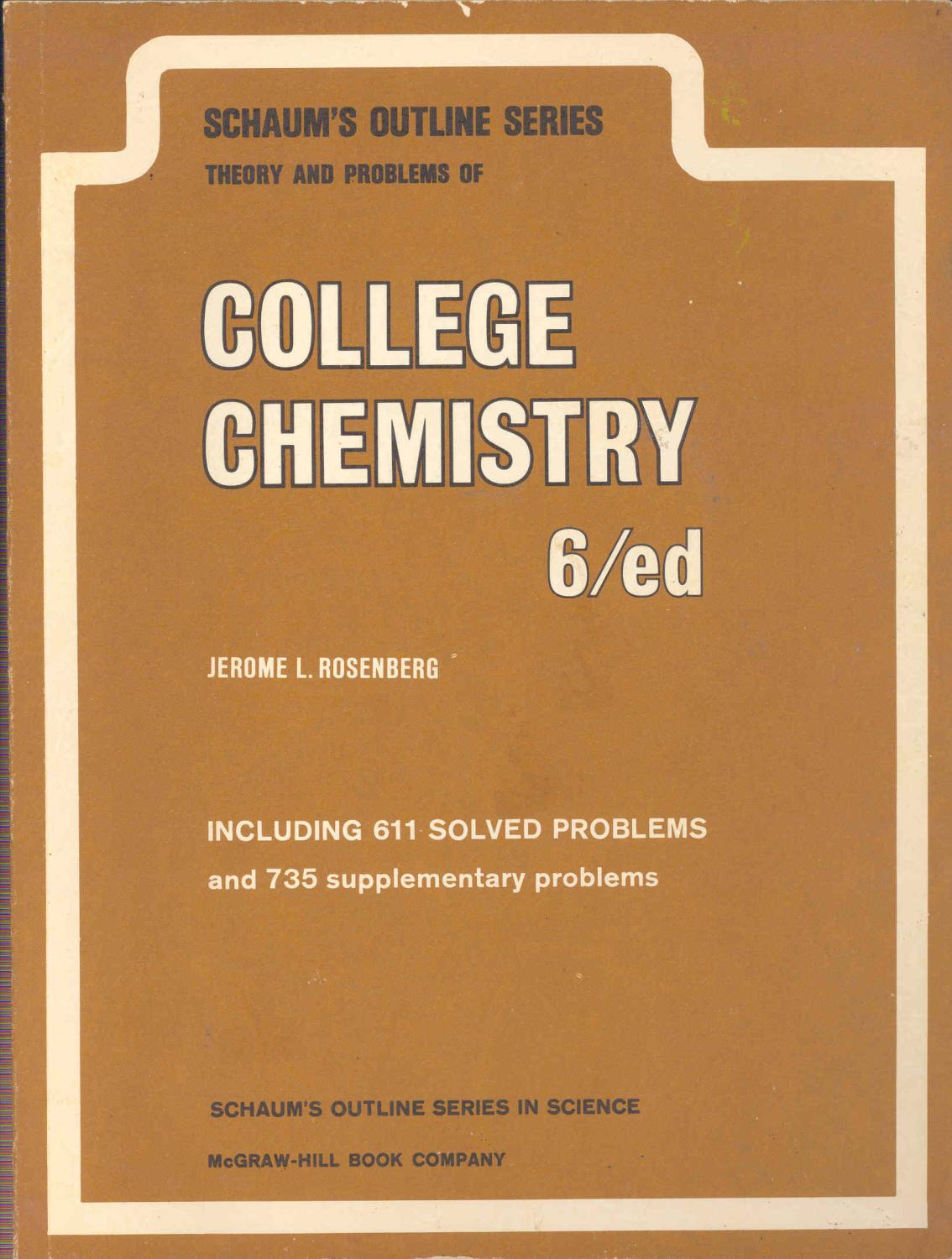 Schaum's outline of theory and problems of college chemistry.[Quantities And Units -- Atomic and Molecular Mass Molar Mass -- Formulas and Composition Calculations -- Calculations From Chemical Equations -- Measurement Of Gases -- The Ideal Gas Law and Kinetic Theory -- Thermochemistry -- Atomic Structure And The Periodic Law -- Properties Of Solutions -- Organic Chemistry And Biochemistry -- Thermodynamics And Chemical Equilibrium -- Acids and Bases -- Complex Ions Precipitates -- Electrochemistry -- Rates of Reactions -- Nuclear Processes -- Chemical Bonding and Molecular Structure -- Solids and Liquids -- Oxidation reduction -- Concentrations of Solutions -- Reactions Involving Standard Solutions -- Appendix A Exponents -- Logarithms]