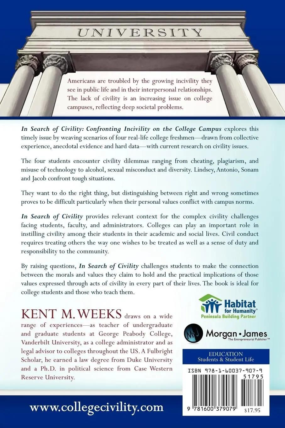 Americans are clamoring about the growing incivility they see in public life and in their interpersonal relationships. Incivility--the lack of regard for others--is an increasing issue on college campuses, reflecting deep societal problems and expressing itself in sometimes unique ways. Kent Weeks explores this timely issue by presenting real-life experiences of four college freshmen at a large university and provides information to stimulate thoughtful discussion of civility dilemmas.