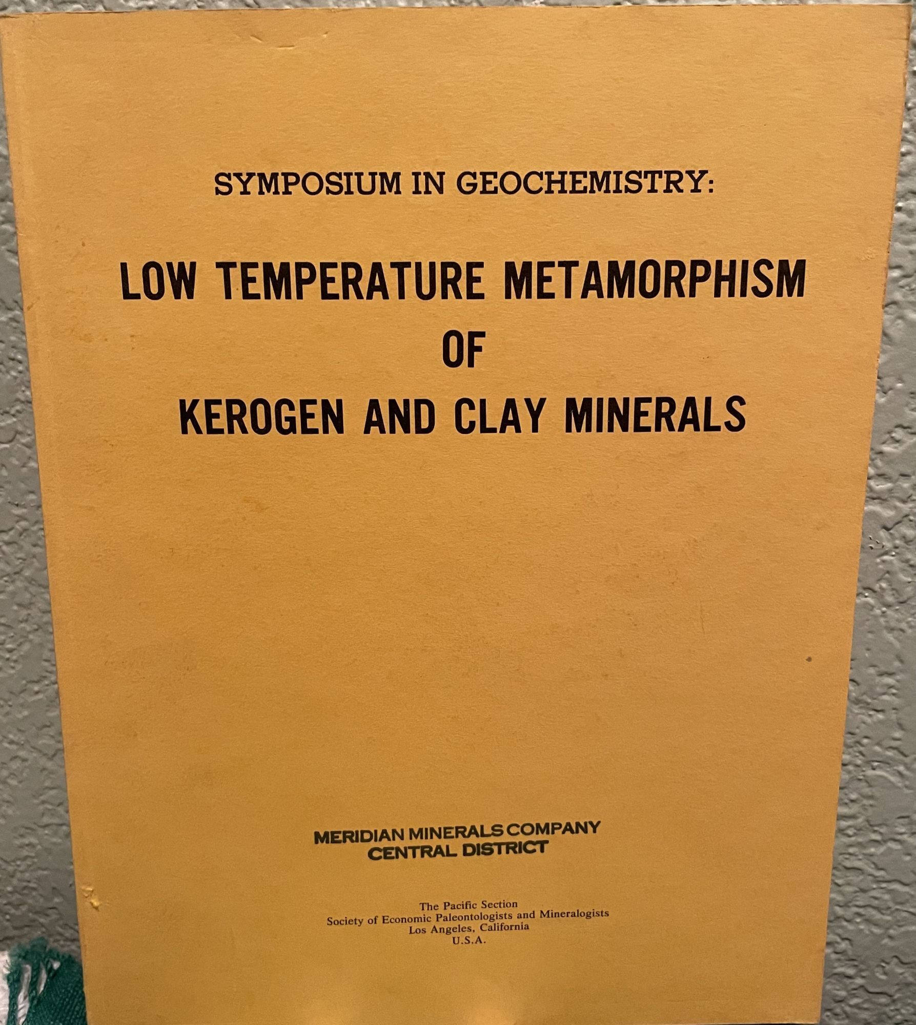 Symposium in Geochemistry Low Temperature Metamorphism of Kerogen and Clay Minerals