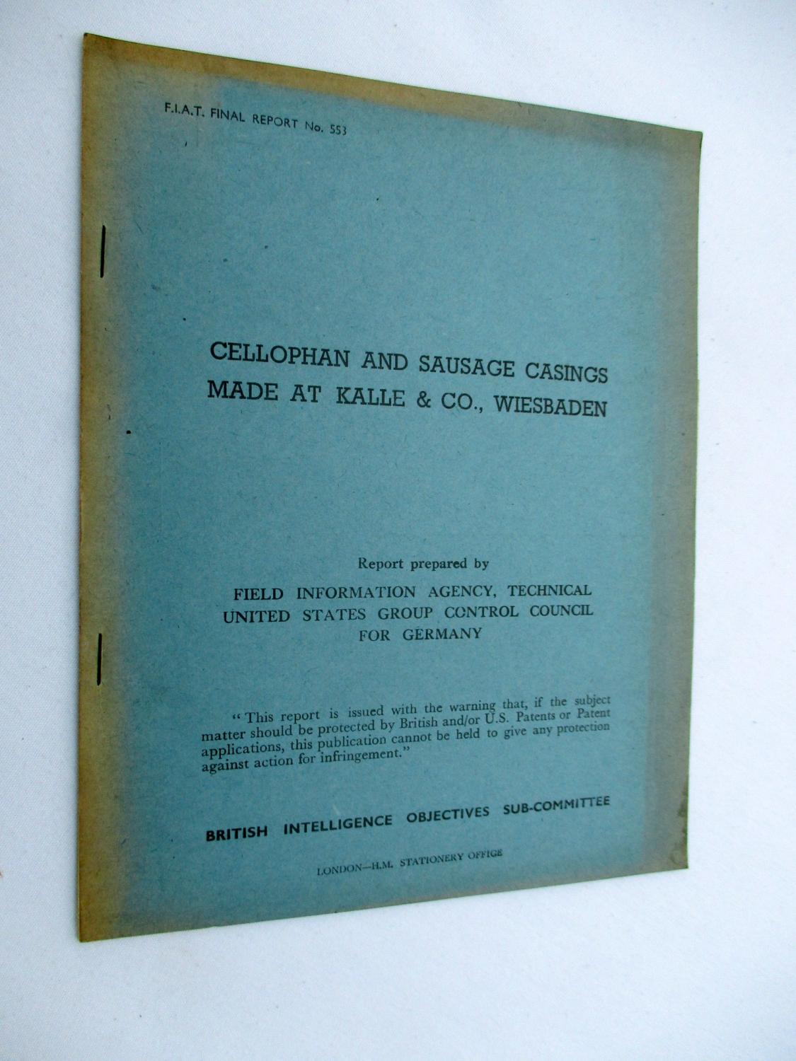 FIAT Final Report No. 553. CELLOPHAN AND SAUSAGE CASINGS MADE AT KALLE & CO., WIESBADEN. Field Information Agency; Technical. United States Group Control Council for Germany. BIOS. British Intelligence Objectives Sub-Committee