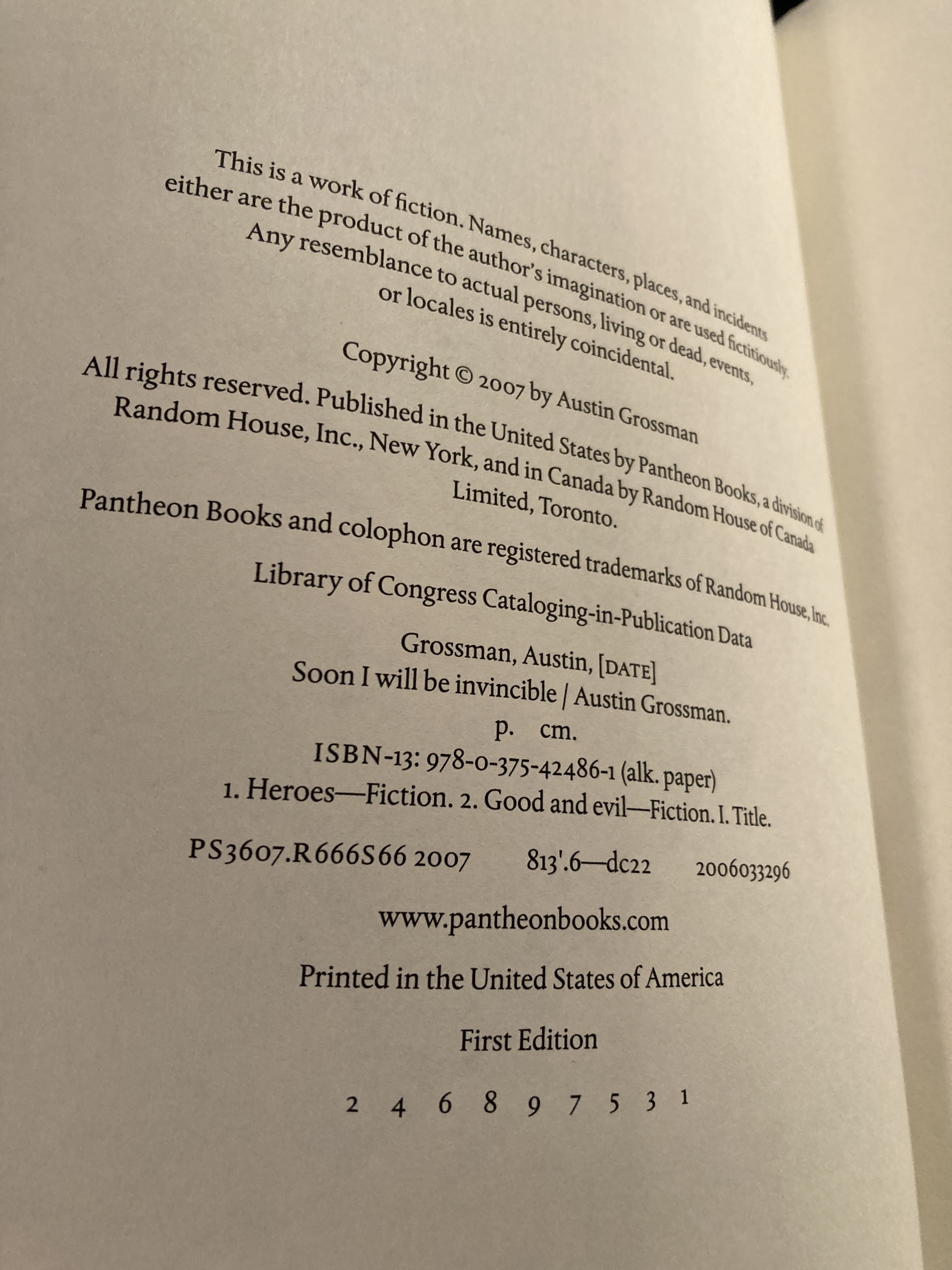 When Doctor Impossible, an evil genius, mad scientist, time-traveler, and ambitious wannabe world dominator, escapes from prison and launches a new plot to seize control of the world, Fatale, a woman built by the NSA to be the next generation of weaponry, joins a group of misfit superheroes in their quest to destroy Doctor Impossible. A first novel. 50,000 first printing.