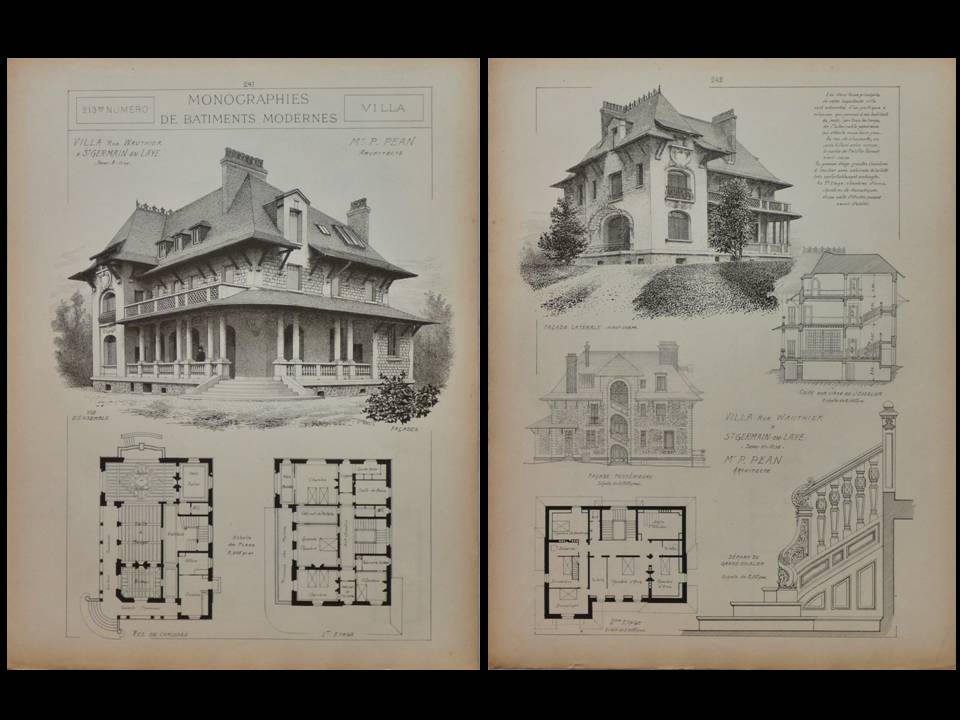 Monographies de bâtiments modernes - n°213 - vers 1905. rassemble deux pages de gravures et un court texte sur une villa, 28 rue Wauthier, à Saint Germain en Laye (Arch. Péan). 27 x 36 cm - 2 pages (une feuille recto verso). bon état (aucune annotation). N° de réf. du vendeur ABE-1746798281453