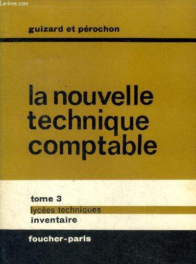 La nouvelle technique comptable Tome 3 Lycées techniques Inventaire